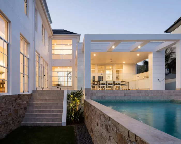 Due to the views on offer, large doors and windows were a must to capture all the site had to offer and thus, the privacy looking back in was also a big factor, one key in bringing the pool back up into the footprint of the site, allowing the house to wrap around it and tuck it in more to create the sense of a secluded, more private pool and outdoor entertaining area.