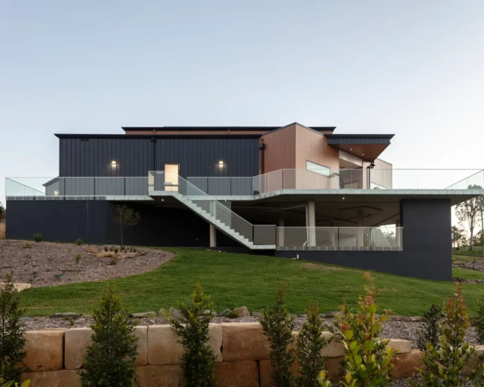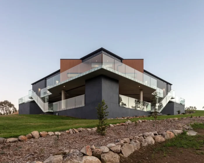 The building interior took inspiration from a gallery in Malta, with large spaces and a vast white over white pallette to let the art and displays dominate the interior. This contrasts to the exterior which was driven in form and style from the planning scheme, surrounding environment and existing buildings located on the winery grounds.