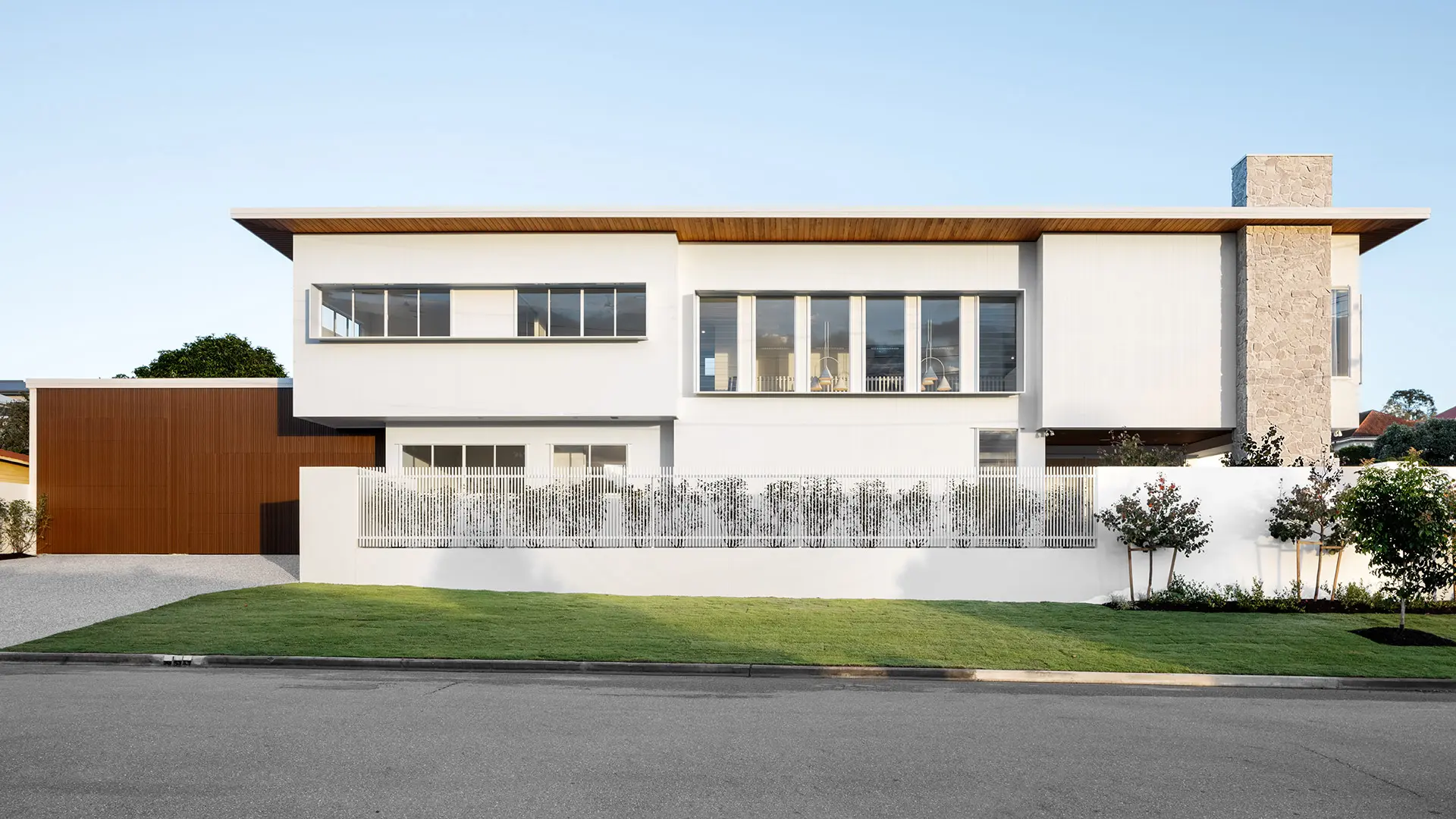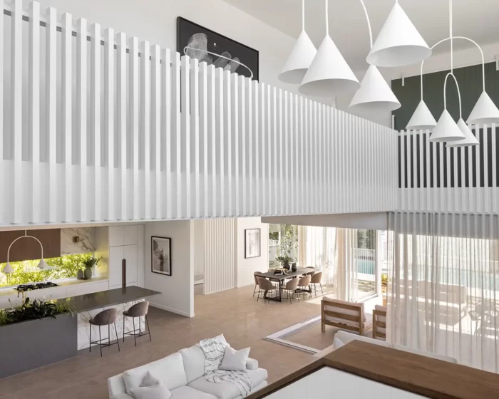 Sydney Avenue House 2.0 is located on the corner of a block within the inner Brisbane suburb of Camp Hill. The corner block was taken full advantage of, and this is evident in its long unbroken horizontal lines exaggerating the blocks length. The crisp white palette extends to the inside where large voids and windows play on light and fill the space with brightness.